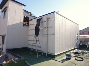 根と外壁の塗装工事をしました。サーモアイ4F(遮熱塗料)を塗ることにより、太陽熱を反射させることで、夏の暑い日でも屋根の温度上昇を抑え光熱費を抑える効果があります。