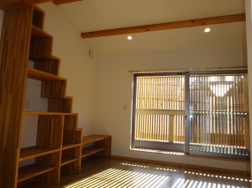 LDK ・ ロフトへと上がる箱収納階段